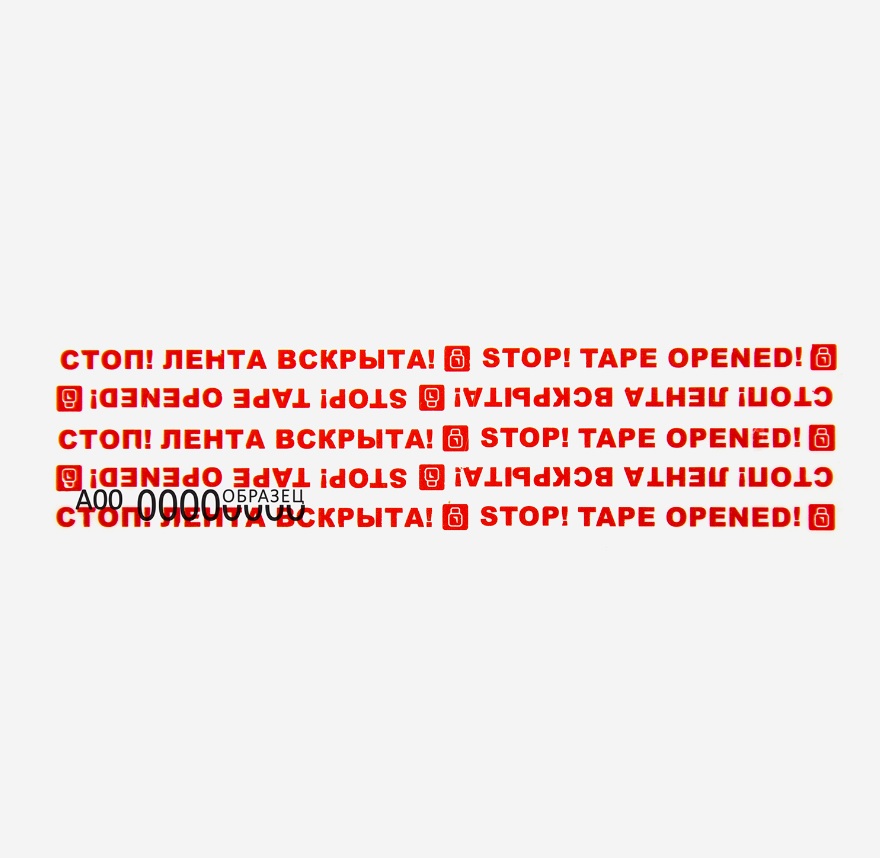 оставляет следы на объекте опломбирования и наклейке ("СТОП! ЛЕНТА ВСКРЫТА! STOP! TAPE OPENED!")
